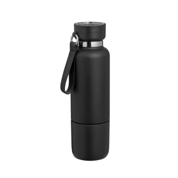 This bottle features double-wall insulation to keep beverages hot or cold for hours, maintaining optimal temperature throughout the day. Its spill-proof PP twist-off lid secures your drink safely inside, even during movement or tipping. The lid includes a convenient storage compartment, suitable for small items like tea bags, coffee grounds, or supplements. The bottle’s base serves as a removable cup, ideal for drinking on the go. With a 500ml capacity, it meets daily hydration needs at work, the gym, or outdoors. Constructed from premium stainless steel, it ensures lasting durability and resistance to wear.