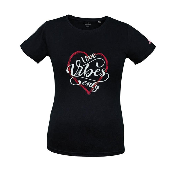 Love Vibes Organic Cotton Tee. Round Neck Women Tees with Love vibes printed Logo at the front. Shop Online only at Just Adore. Grab yours now.