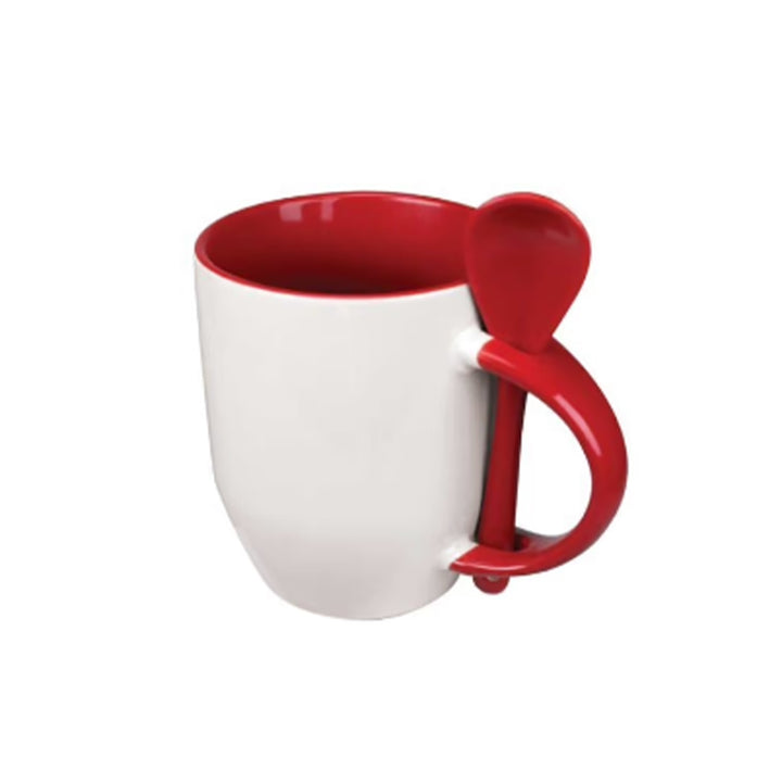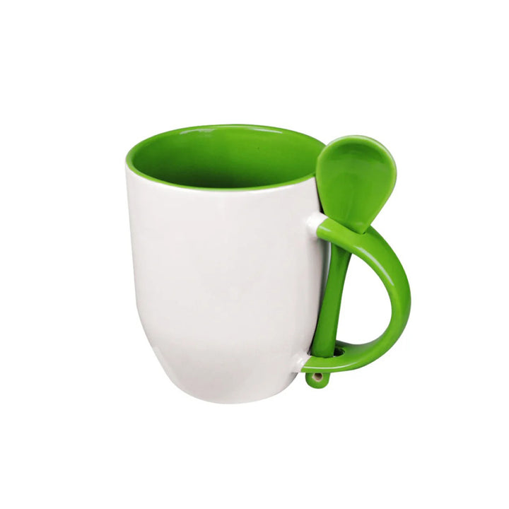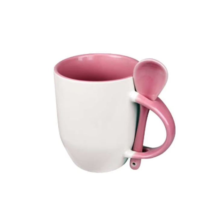 Ceramic Mugs with Spoon, Dual Color, Blank