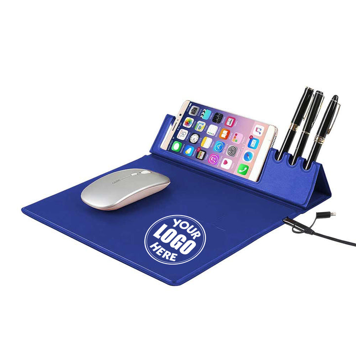 PU Leather Mousepad with Wireless Charging, Pen & Mobile Holder, Blank